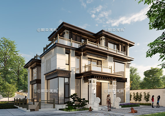 占地面積 134.8㎡ 土建造價 45.0萬 三層中式田園風格別墅